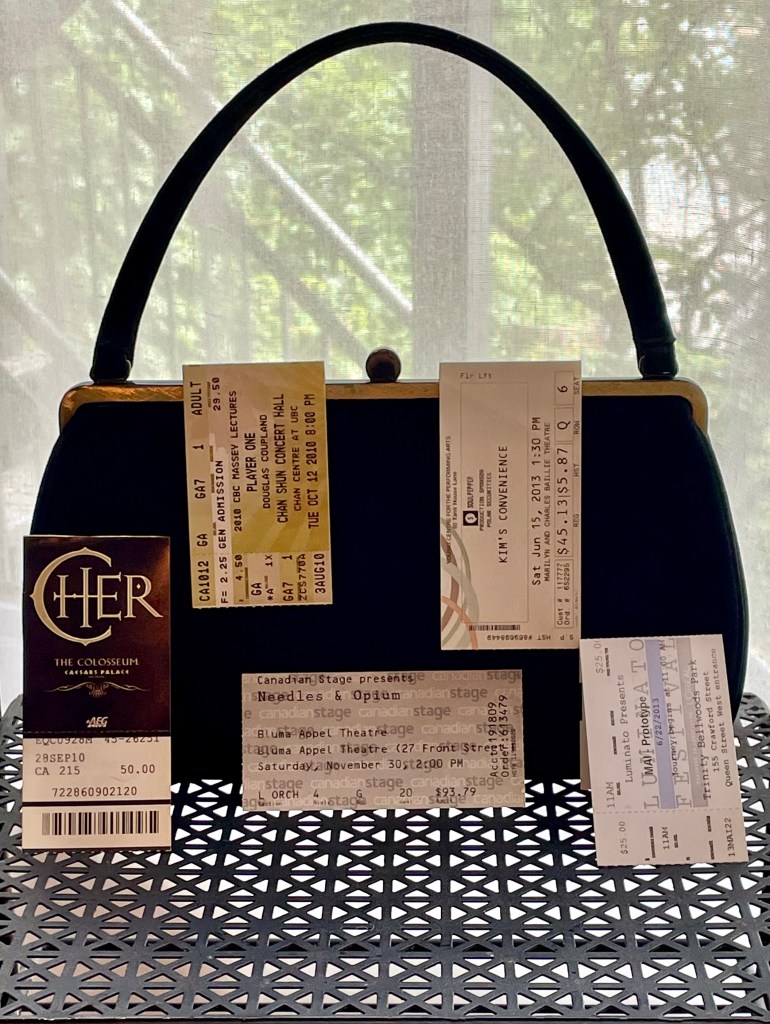 Paper tickets. To theatre and dance performances. To concerts and art exhibits. I used to keep them, when paper tickets were all there were. I would use them as bookmarks or stash them away in a purse I rarely used. I’m not sure why I kept them all. To conjure up a fond memory, later, I guess, of the shows, of the venues, of friends or family with me that day, that night.